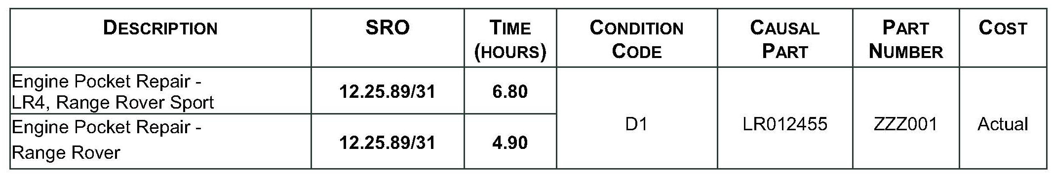 Repair procedures are under constant review, and therefore times and prices are subject to change; those quoted here must be taken as guidance only. Always refer to DDW to obtain the latest repair time. Claim only the actual cost of the locally-sourced part using code 'ZZZ001'.