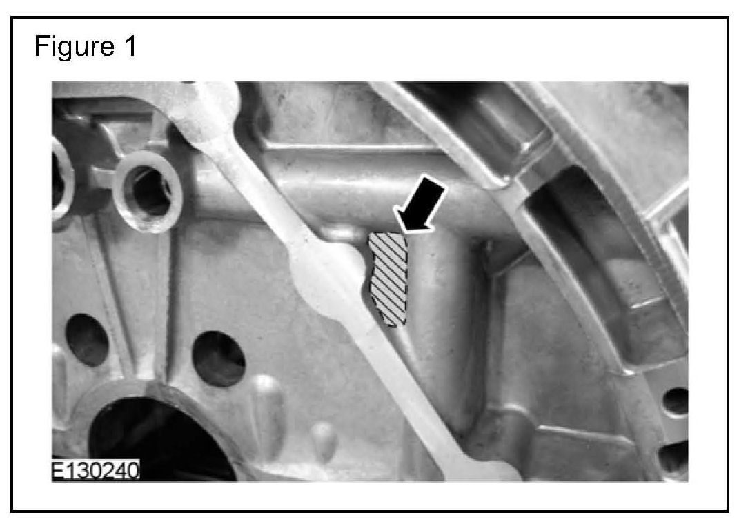 An oil leak from the rear of the engine may be evident. This leak may be caused by a porosity oil leak from the high pressure gallery on the rear of the engine block.
