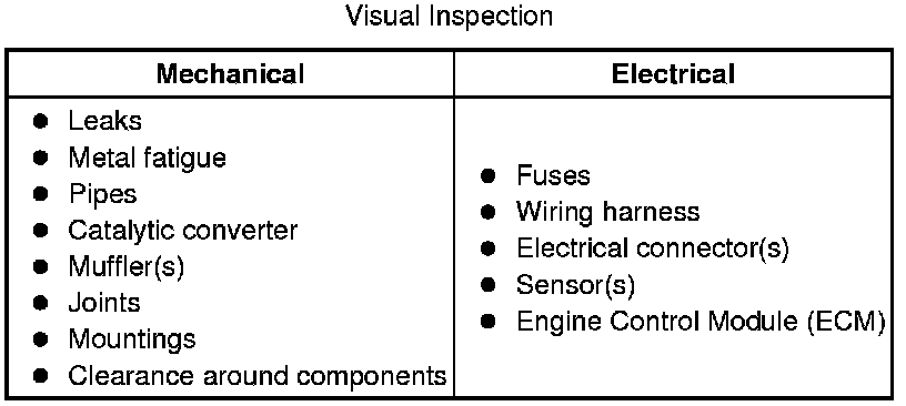 4 If the cause is not visually evident, verify the symptom and refer to the Symptom Chart, alternatively check for Diagnostic Trouble Codes (DTCs) and refer to the DTC Index.