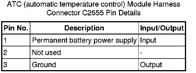 The ATC (automatic temperature control) module processes inputs from the control panel switches, system sensors and the medium speed CAN (controller area network) bus, then outputs the appropriate control signals to the A/C (air conditioning) system and the heating and ventilation system. In addition to controlling the A/C (air conditioning) system and the heating and ventilation system, the ATC (automatic temperature control) module also controls the following: