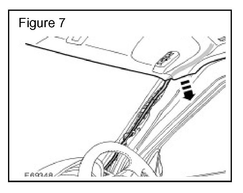 10. If satisfactory test is still NOT completed refer to GTR Workshop Manual Interior Trim and Ornamentation Section 76.64.15 and remove the headliner to gain access to the drain tube. (Figure 7)