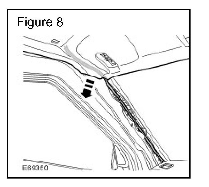 6. If the concern has still NOT been corrected, refer to GTR Workshop Manual Section 76.64.15 and remove the headliner to gain access to the drain tube. (Figure 8)