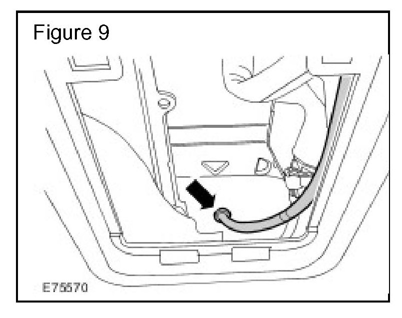 1. Open the right-hand side access flap in the tailgate load space to gain access to the roof opening panel drain tube. (Figure 9)