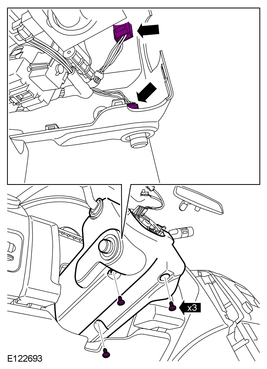 9 Disconnect the 2 electrical connectors from the steering column multifunction switches.