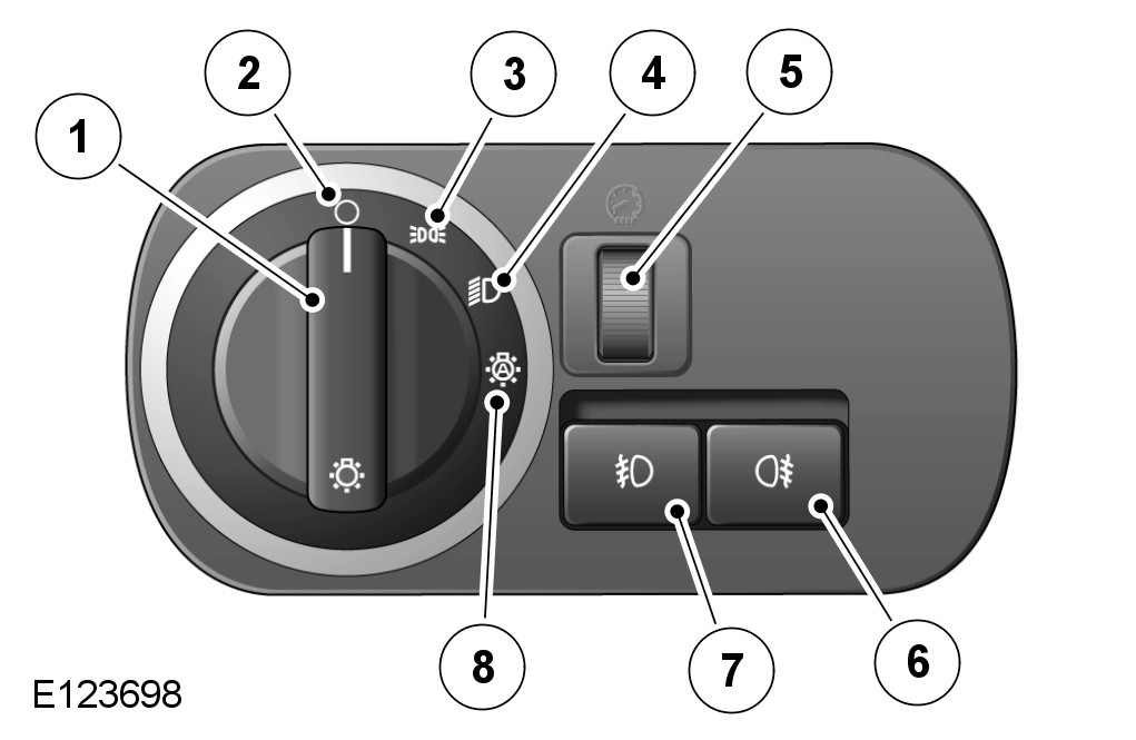 - Lighting control switch for side lamps, headlamps and auto headlamps (if fitted)