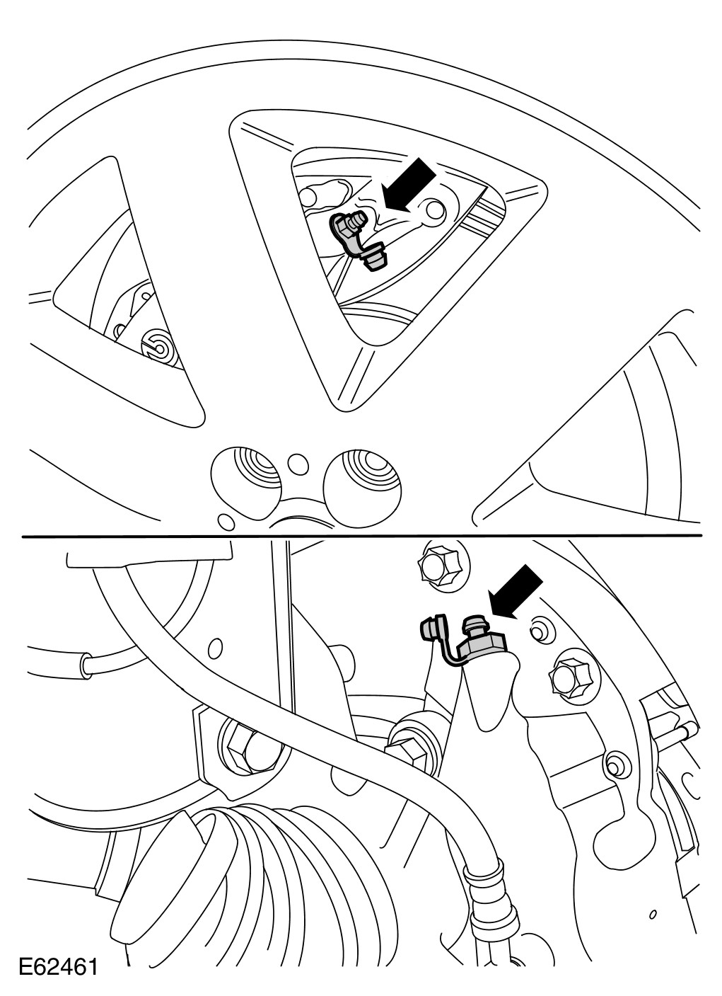 - If access is restricted to the front caliper outer bleed screws, rotate the road wheels to gain access.