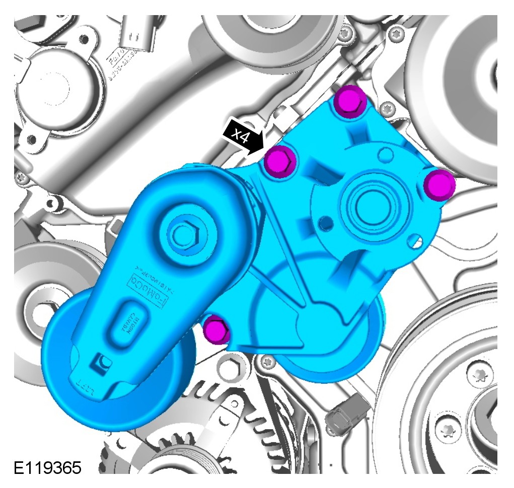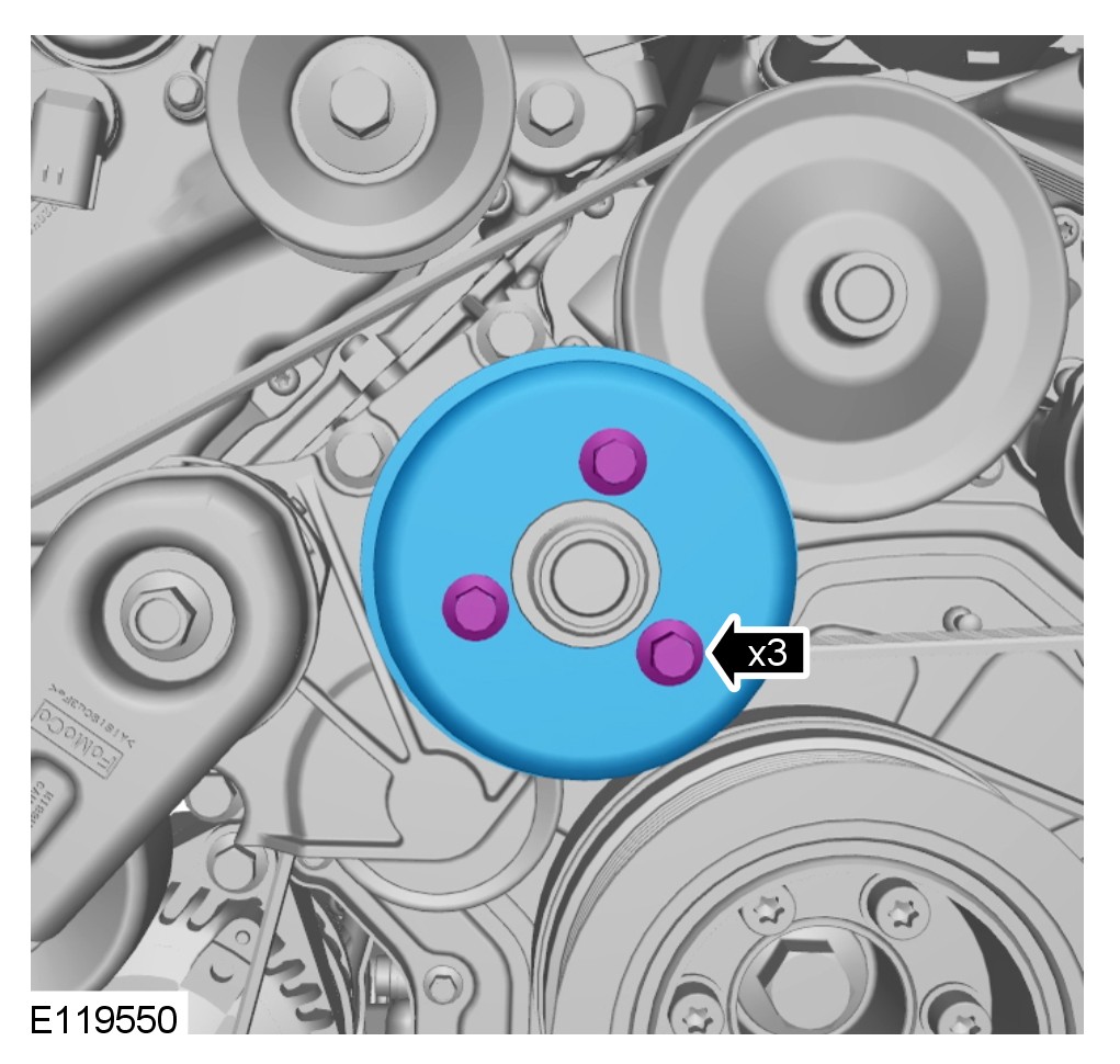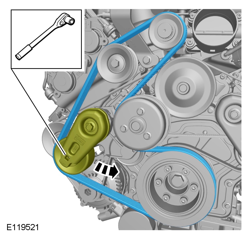 CAUTION: Make sure the supercharger belt is correctly aligned to the pulleys. Failure to follow this instruction may result in damage to the vehicle.