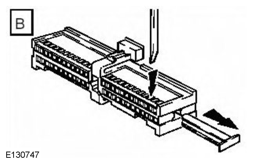 - Remove the faulty terminal from the electrical connector using the extractor tool and correct tip. Make sure that any anti-backout device is released before trying to remove the terminal.