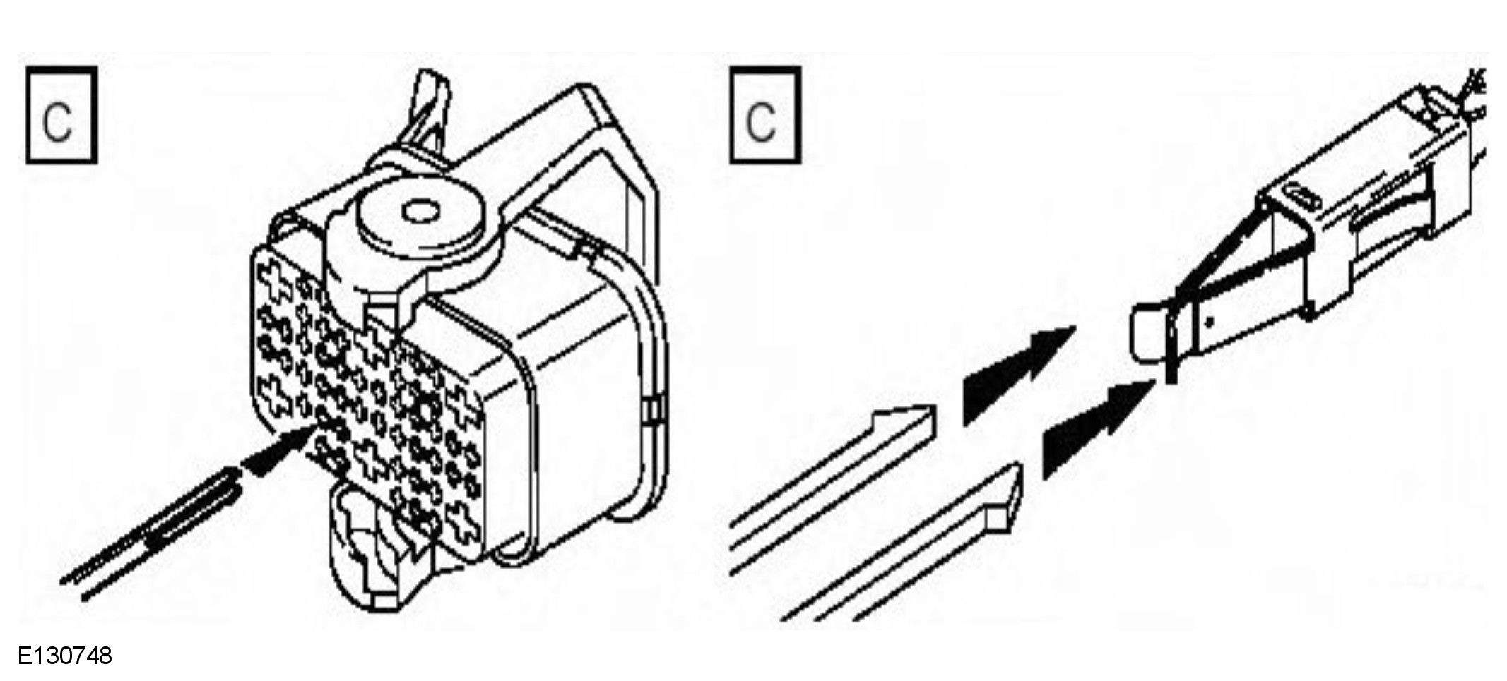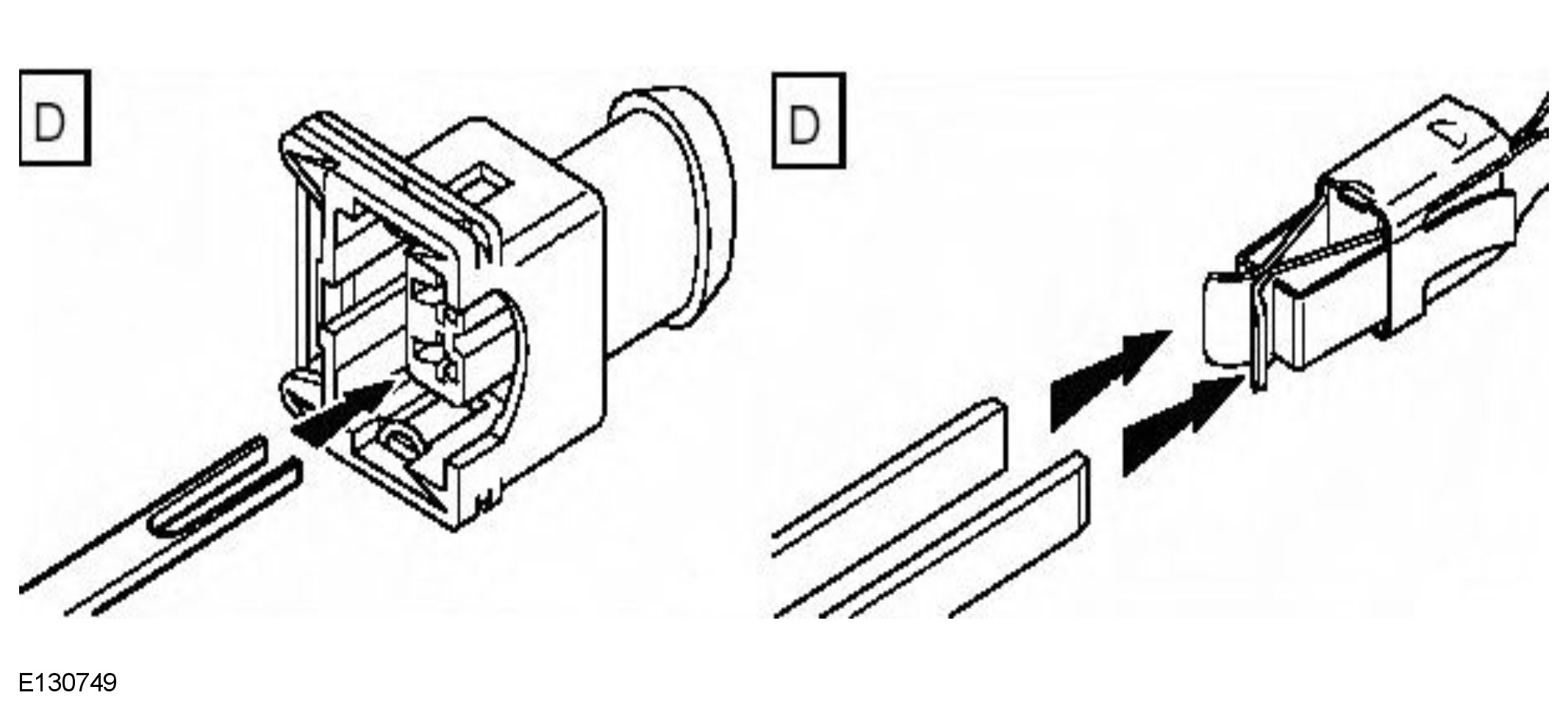 - When all of the splices have been made, fit the terminal(s) to the electrical connector, taking care that the terminals are correctly orientated.