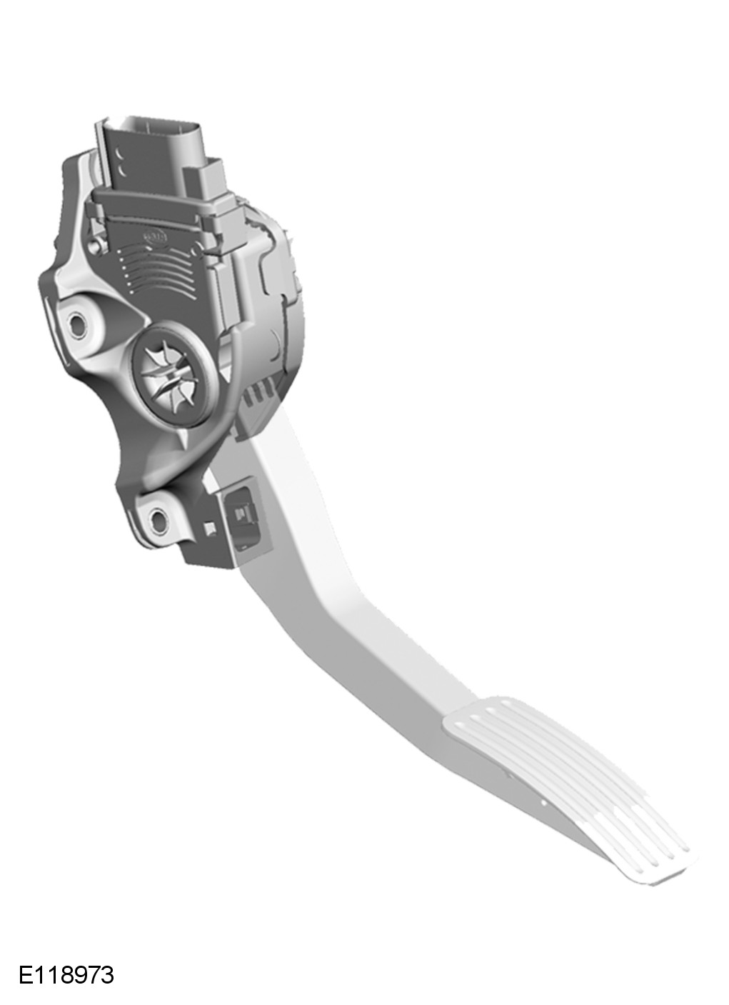 Three screws attach the APP (accelerator pedal position) sensor and integrated accelerator pedal to a bracket on the lower dash panel. A six pin electrical connector provides the interface with the vehicle harness.