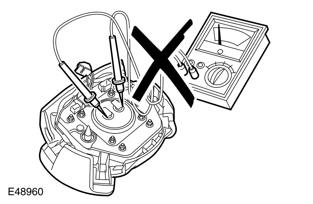 WARNING: Never use a multimeter or other general purpose equipment on SRS components. Use only T4 to diagnose system faults.