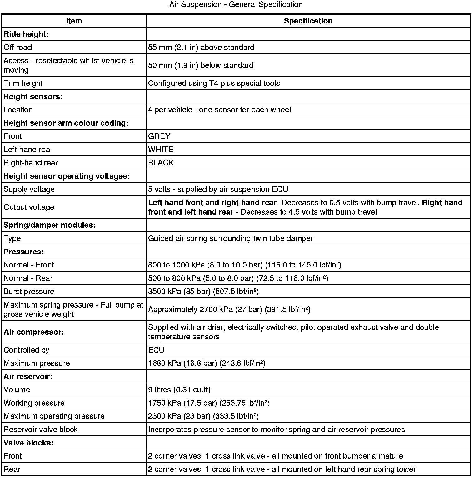Note: The front height sensors are not handed.