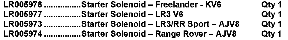 The starter motor solenoid is now available as a serviceable part on the models listed above.