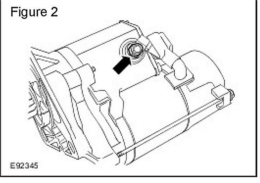 3. Release the starter motor terminal by removing the nut. (Figure 2)