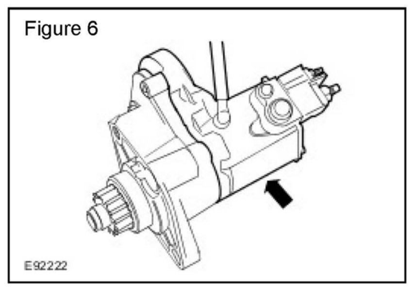 Make sure the starter motor armature remains located inside the motor housing.