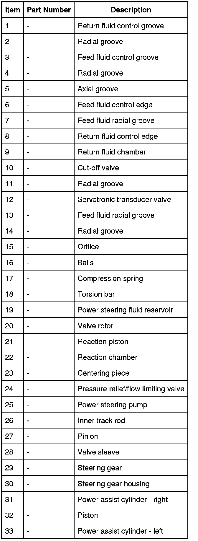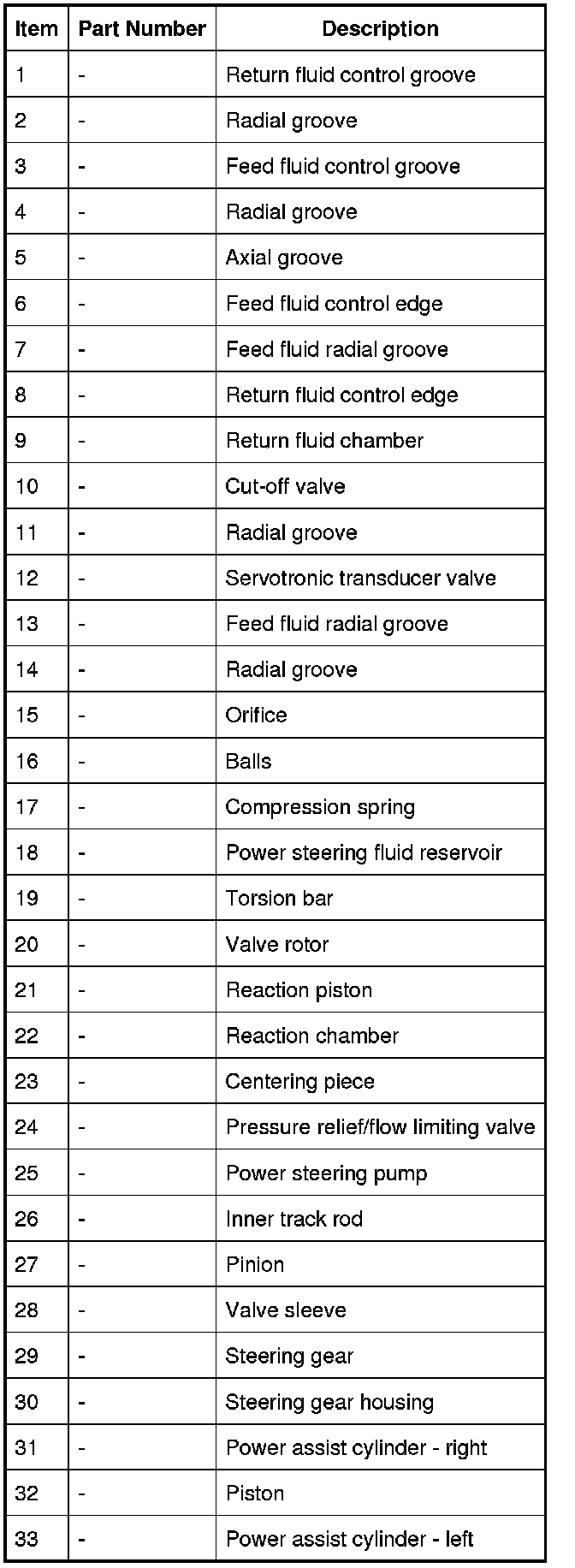 As the vehicle is driven and the road speed increases, the body control module microprocessor analyses the road speed signals from the ABS module and reduces the amount of control current supplied to the Servotronic valve. The Servotronic valve reacts to the control current and opens the valve by an amount appropriate to the road speed. This allows a controlled fluid supply from the feed fluid radial groove to the reaction chamber. The orifice prevents the loss of large amounts of fluid to the return fluid chamber. The higher fluid pressure acting on the reaction piston causes compression of the balls which are located between the reaction piston and the centering piece which in turn is securely connected to the valve sleeve. When driving in a straight line, this has a positive effect on the exact centralising of the steering valve. When the steering valve is actuated, the balls, with a higher load on them, provide additional torsional resistance to rotation of the valve rotor.