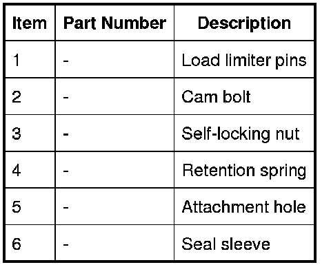 The load limiter comprises two plates which are part of the upper and lower axis. The plates have a central 'guide' pin, and two retention pins, which pass through bushes in the plates, onto which a rubber and steel washer are staked in position. The size of the staking controls the load at which the lower axis separates from the upper axis. A wire 'retention' spring is also fitted to the load limiter.