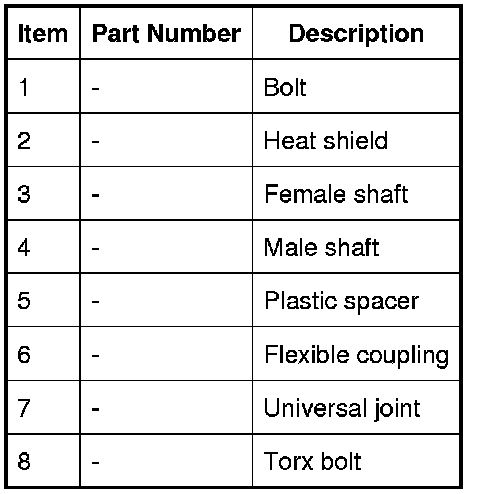 The female shaft is a triangular section tube which is formed to a double 'D' hole at its upper end which mates with the intermediate shaft. An indentation pressed in the wall of the tube ensures the correct alignment between the intermediate shaft and the lower collapsible shaft. A captive nut, clinched to one side of a hole in the double 'D' section, allows for the fitment of a patchlock bolt to secure the intermediate shaft. Clamped around the end of the female shaft is a dust seal which prevents the ingress of dirt and moisture into the sliding joint, and a heat sleeve is also fitted to reflect radiant heat from the exhaust.