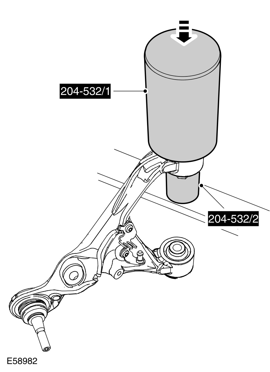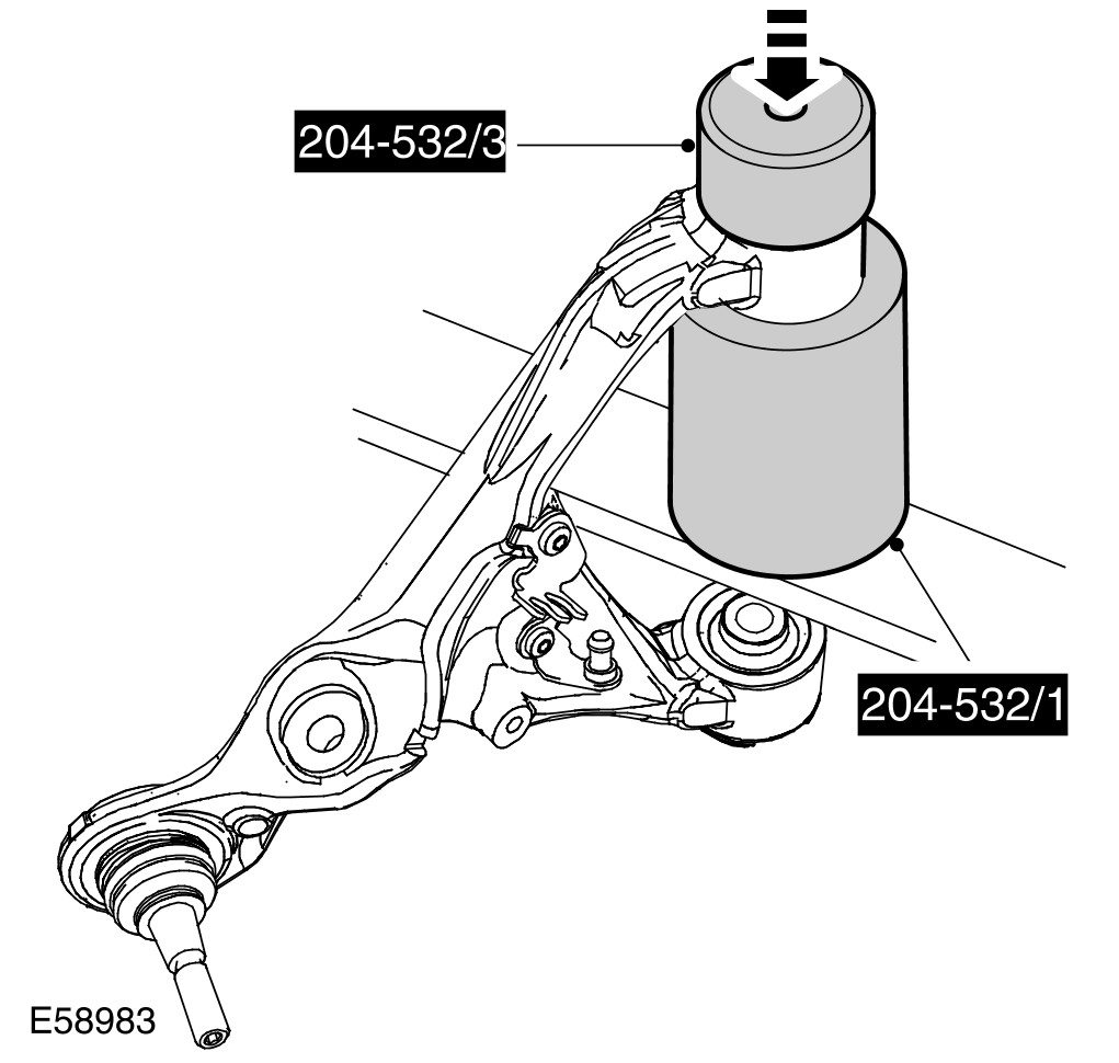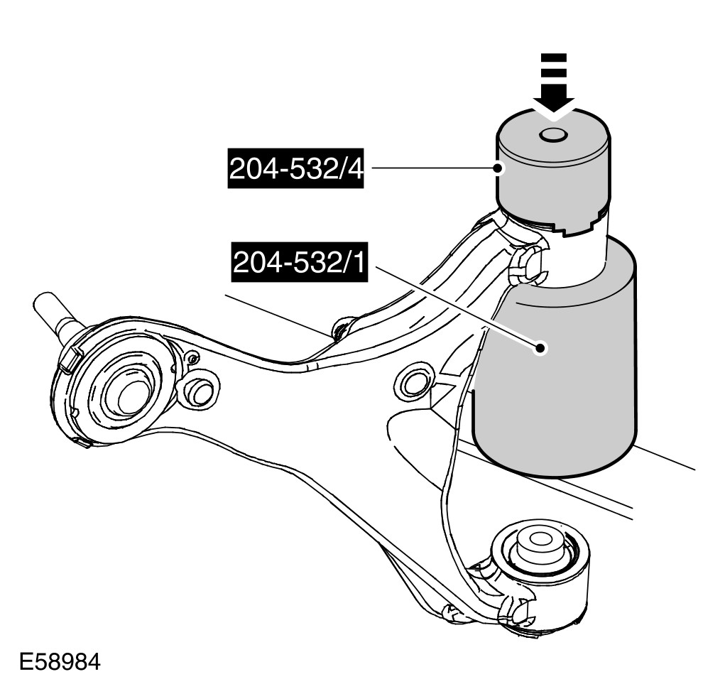 16 Using the special tools, remove and discard the upper arm bushings.