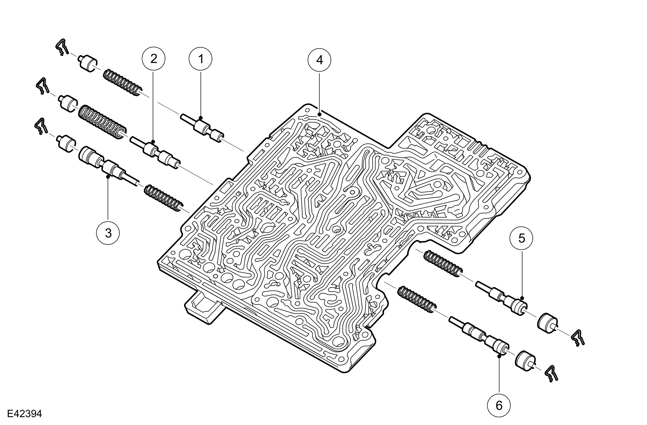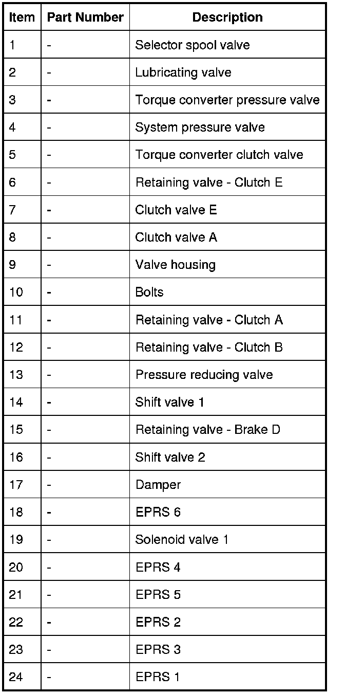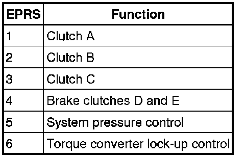 Six EPRS are located in the valve block. The solenoids are controlled by PWM (pulse width modulation) signals from the TCM (transmission control module). The solenoids convert the electrical signals into hydraulic control pressure proportional to the signal to actuate the spool valves for precise transmission operation.