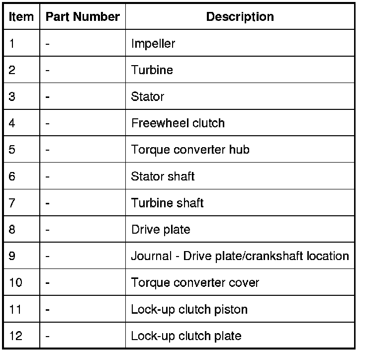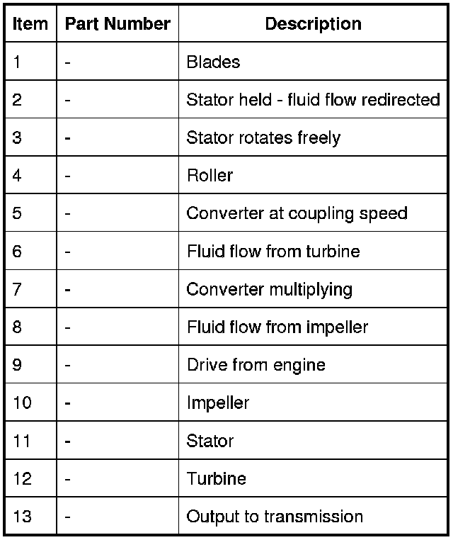 The torque converter is the coupling element between the engine and the transmission and is located in the bell housing, on the engine side of the transmission. The driven power from the engine crankshaft is transmitted hydraulically and mechanically through the torque converter to the transmission. The torque converter is connected to the engine by a drive plate attached to the rear of the crankshaft.