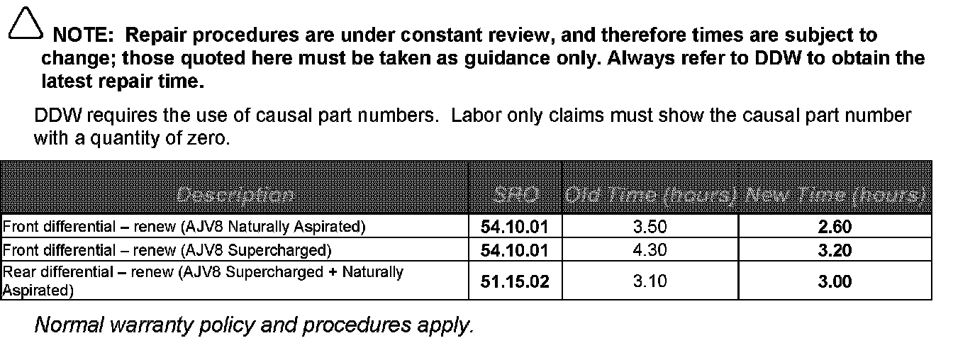 Revised Workshop Procedure - Remove / Install Front and Rear Differentials