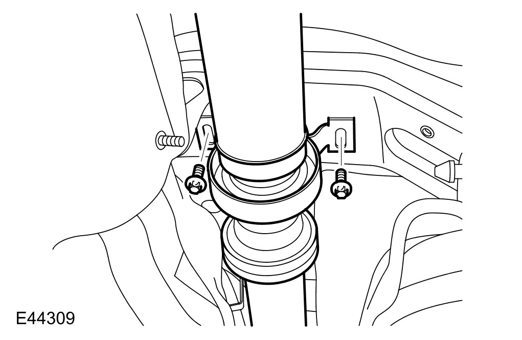 - Remove the 2 driveshaft center bearing mount bolts.