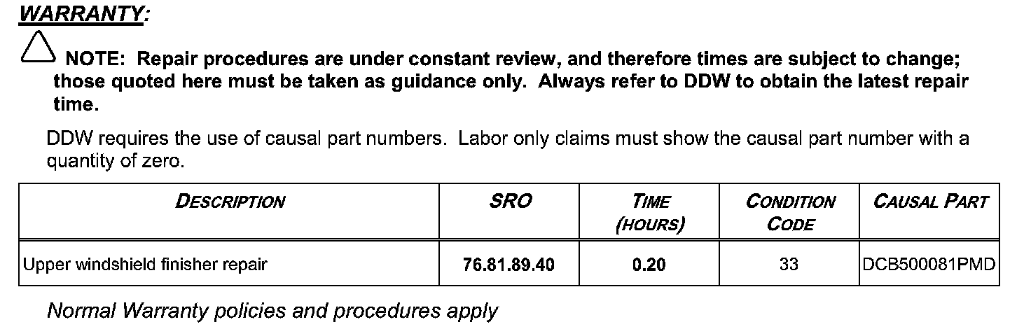 In the event of a customer concern of the above, refer to the Repair Procedure outlined below to inspect and either refit or replace the upper windshield finisher.