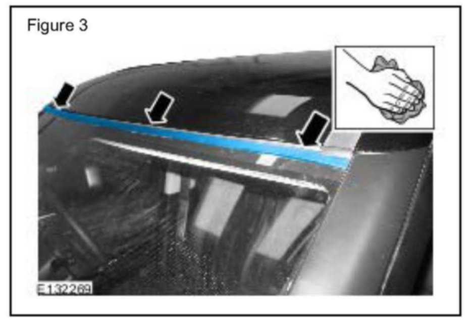 Ensure the upper windshield finisher and windshield is free from dirt and is completely dry.