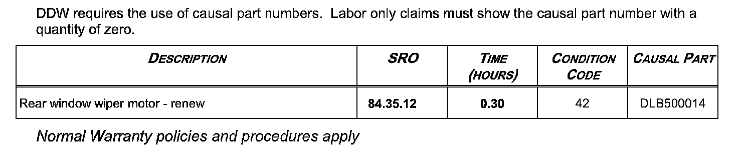 Rear Window Wiper Motor Failure