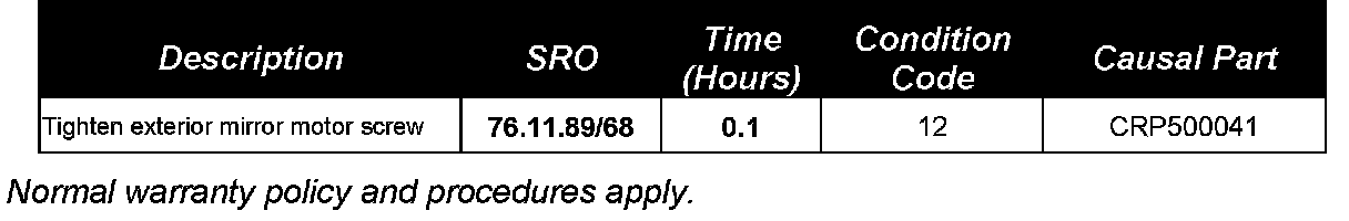 TIGHTEN EXTERIOR MIRROR MOTOR SCREW
