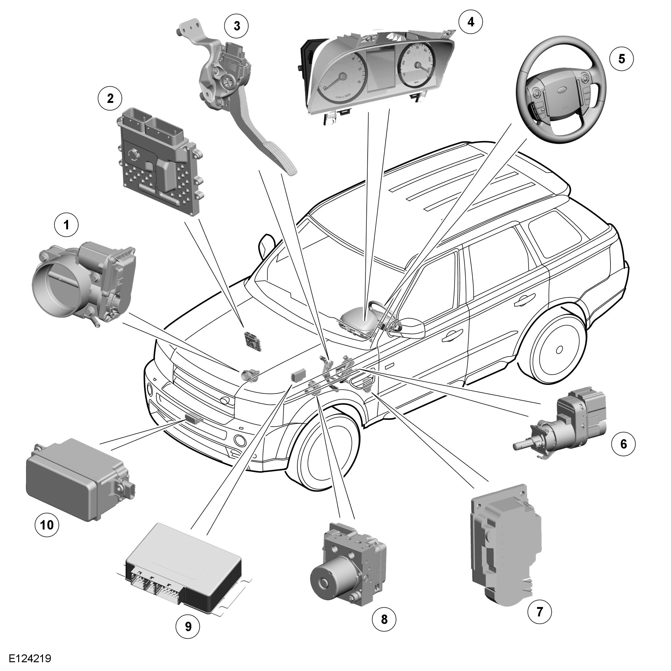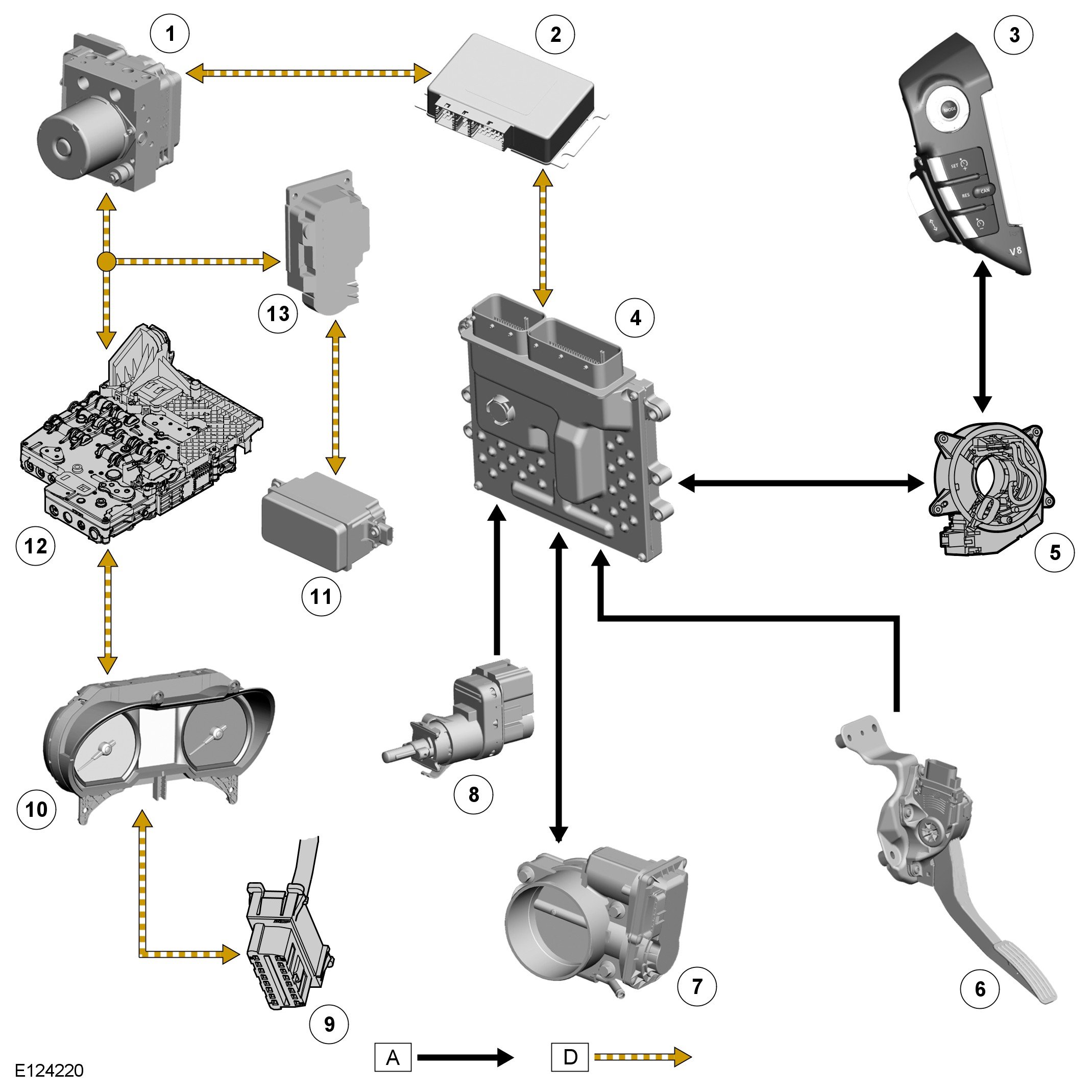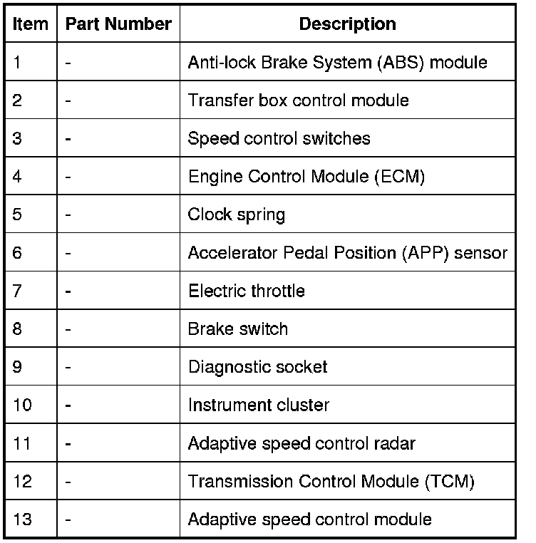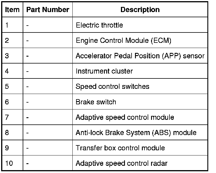The ECM, electric throttle and throttle control are unchanged from those used for non adaptive speed control variants.