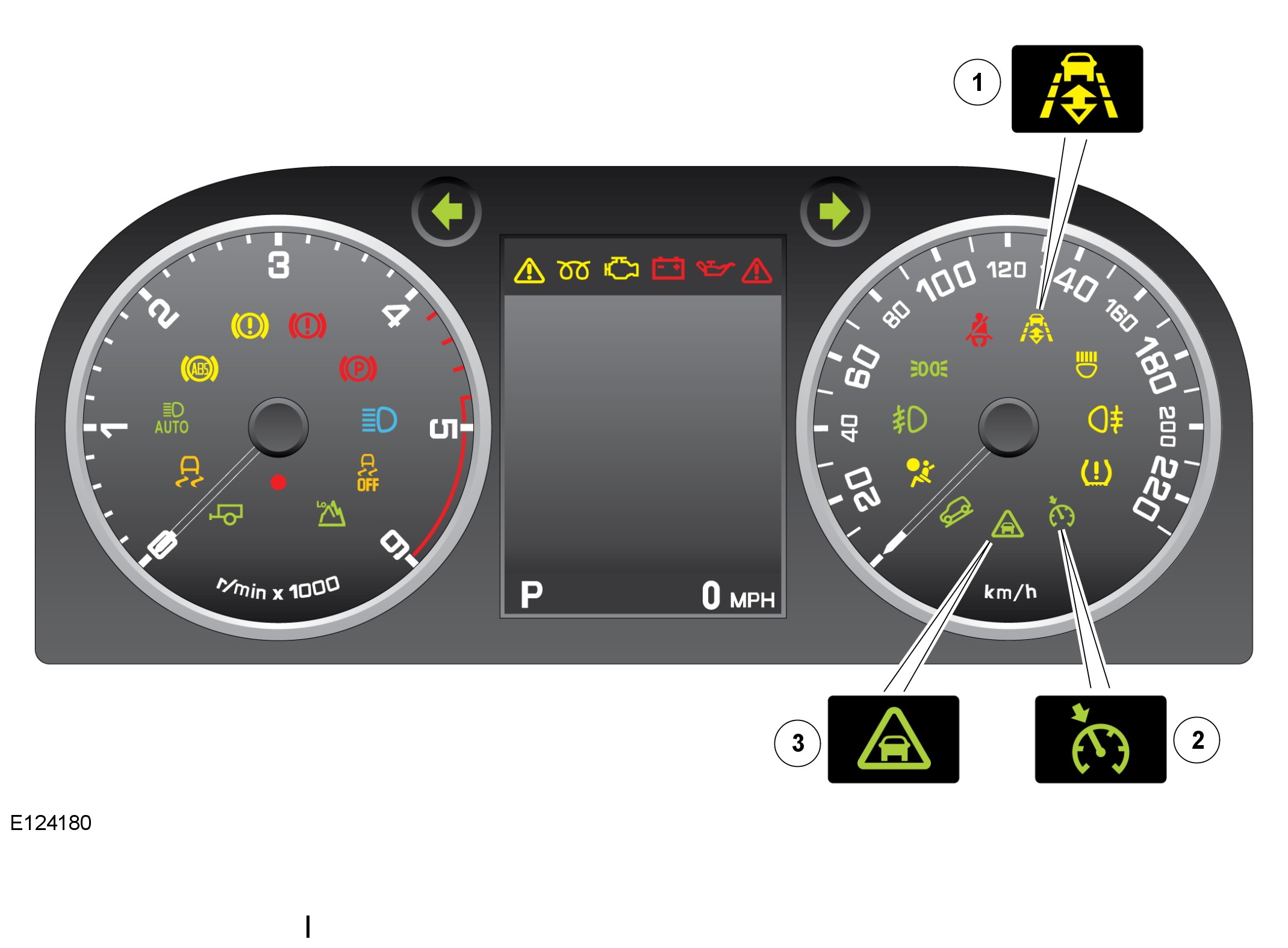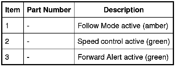 - Adaptive speed control warning indicator (in the instrument cluster).