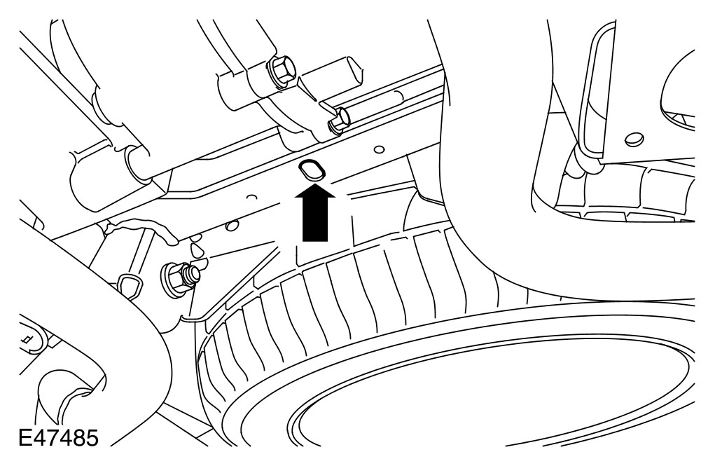 CAUTION: Take care that the lifting pad of the jack is of a suitable size to avoid damaging the heat shield. It is not advisable to use a spacer block between the lifting pad and the rear cross member as this may result in some vehicle instability.
