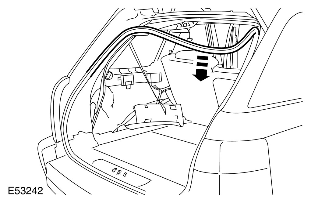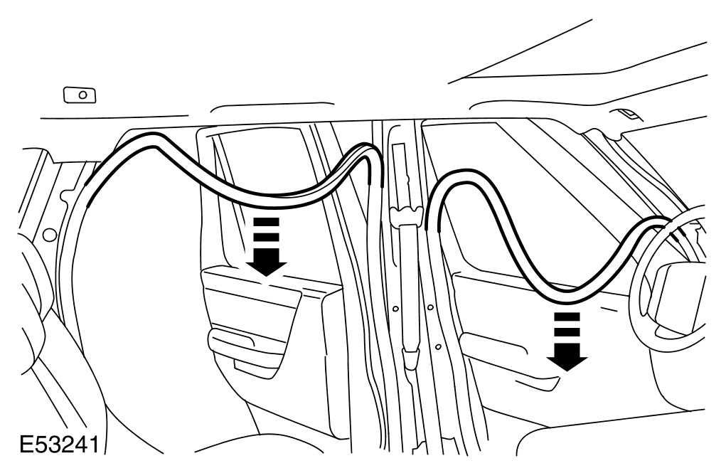 3 Remove the LH C-pillar upper trim panel. For additional information, refer to C-Pillar Upper Trim Panel C-Pillar Upper Trim Panel