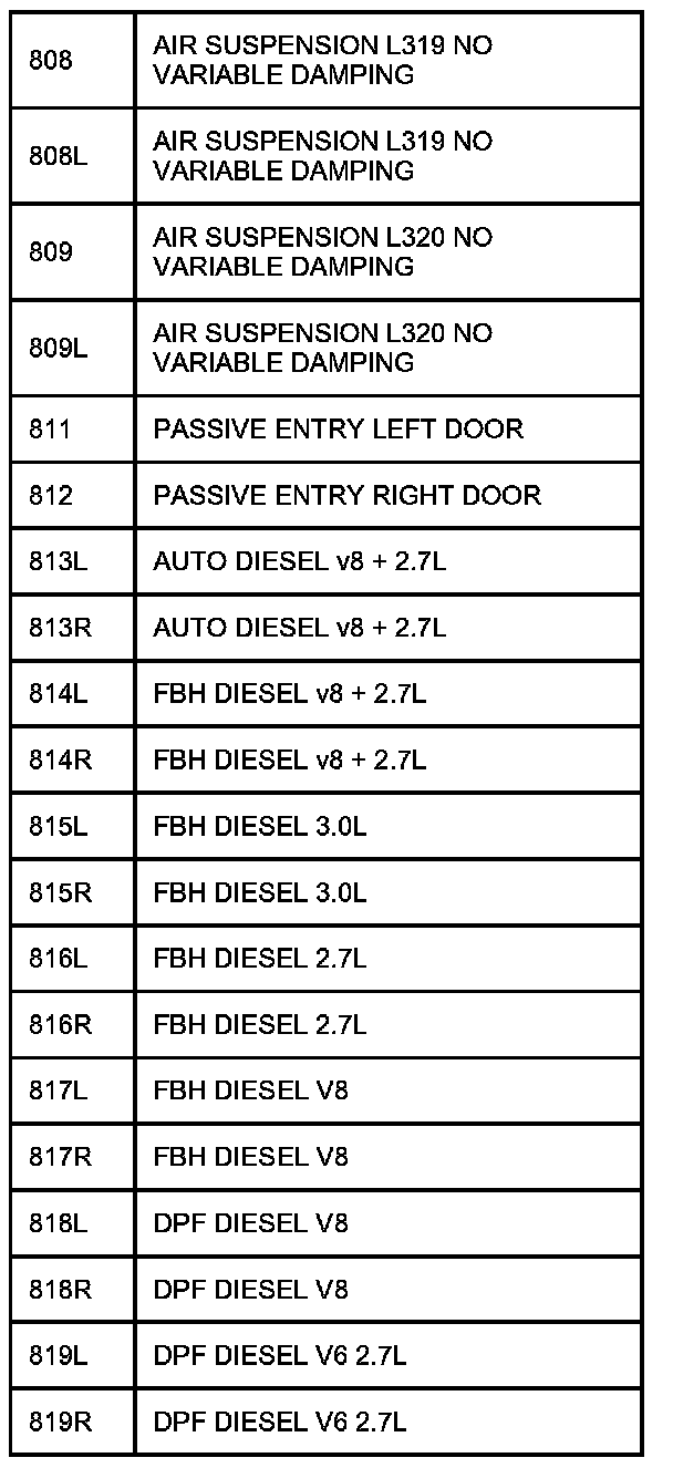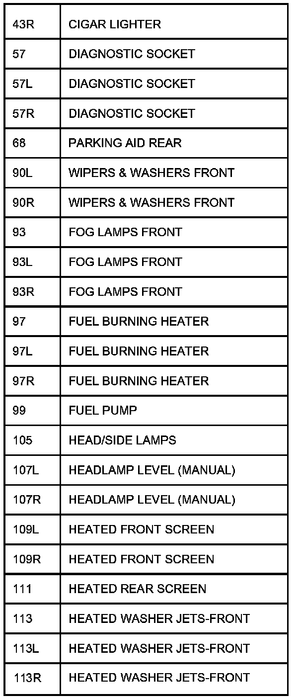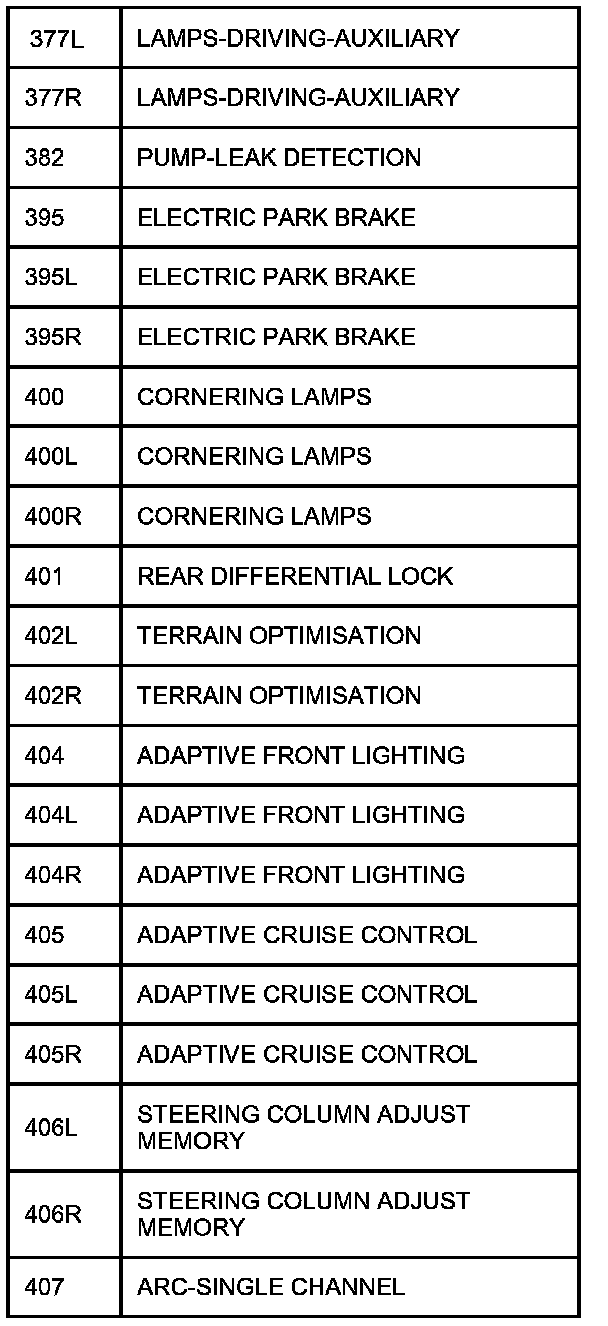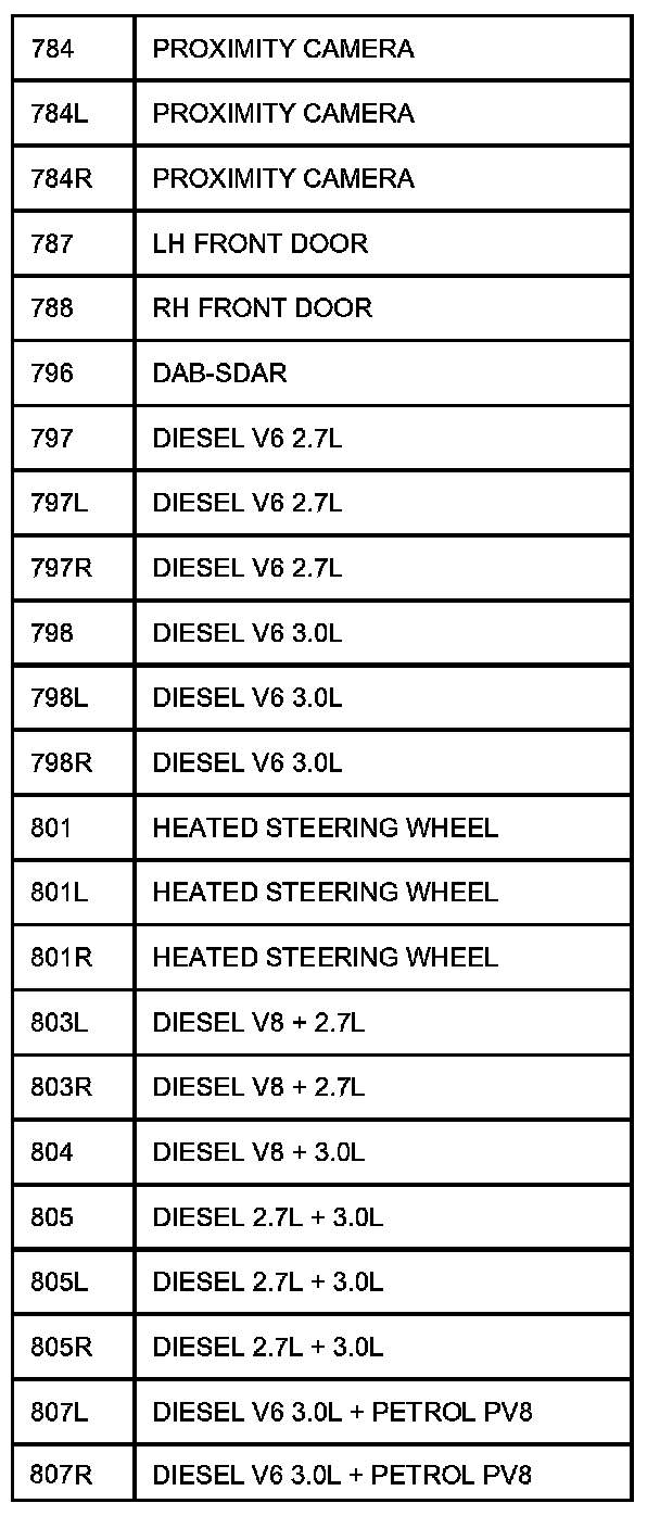 The following table contains a list of circuit (Cct) reference numbers against a description of the applicable model or option. This information should be used in conjunction with the connector pin-out tables to determine the wire configuration of the vehicle under test.