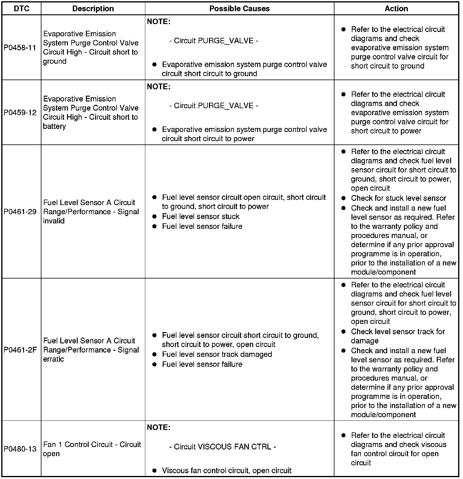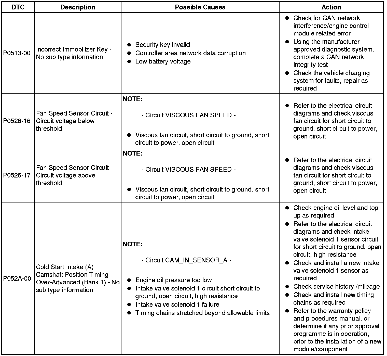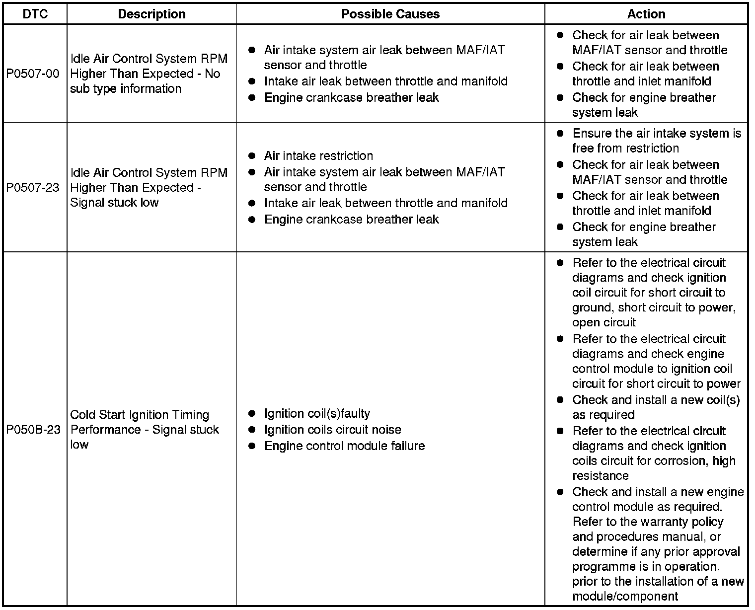 Diagnostic Trouble Code (DTC) Index