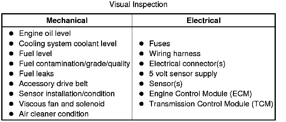 4 If the cause is not visually evident, verify the symptom and refer to the Symptom Chart, alternatively check for Diagnostic Trouble Codes (DTCs) and refer to the DTC Index.