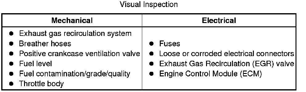 4 If the cause is not visually evident, verify the symptom and refer to the Symptom Chart, alternatively check for Diagnostic Trouble Codes (DTCs) and refer to the DTC Index.