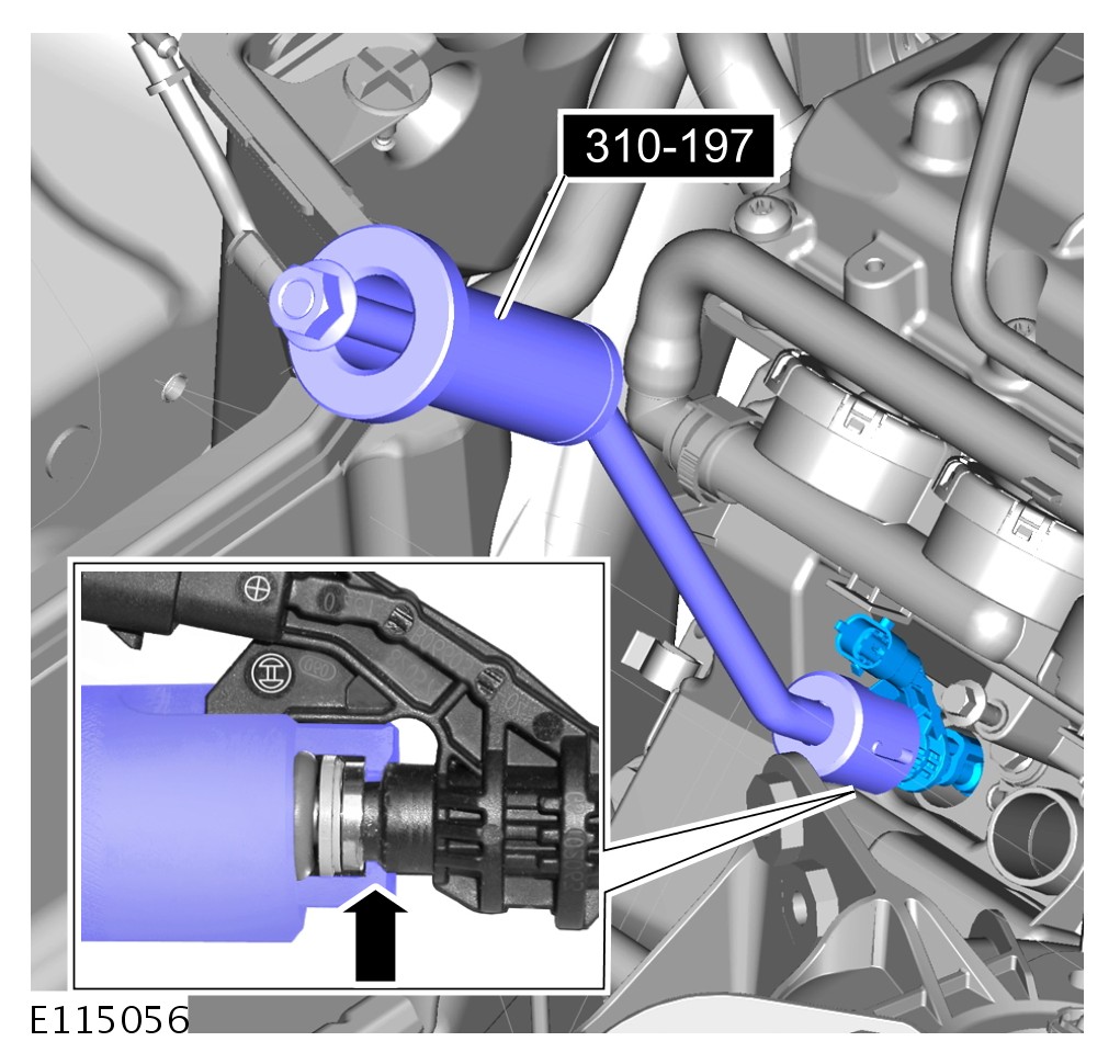 CAUTION: Make sure that the special tool is located correctly to the fuel injector prior to removing the fuel injector.