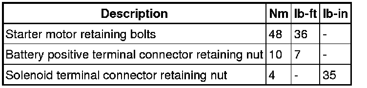 Starting System: Specifications