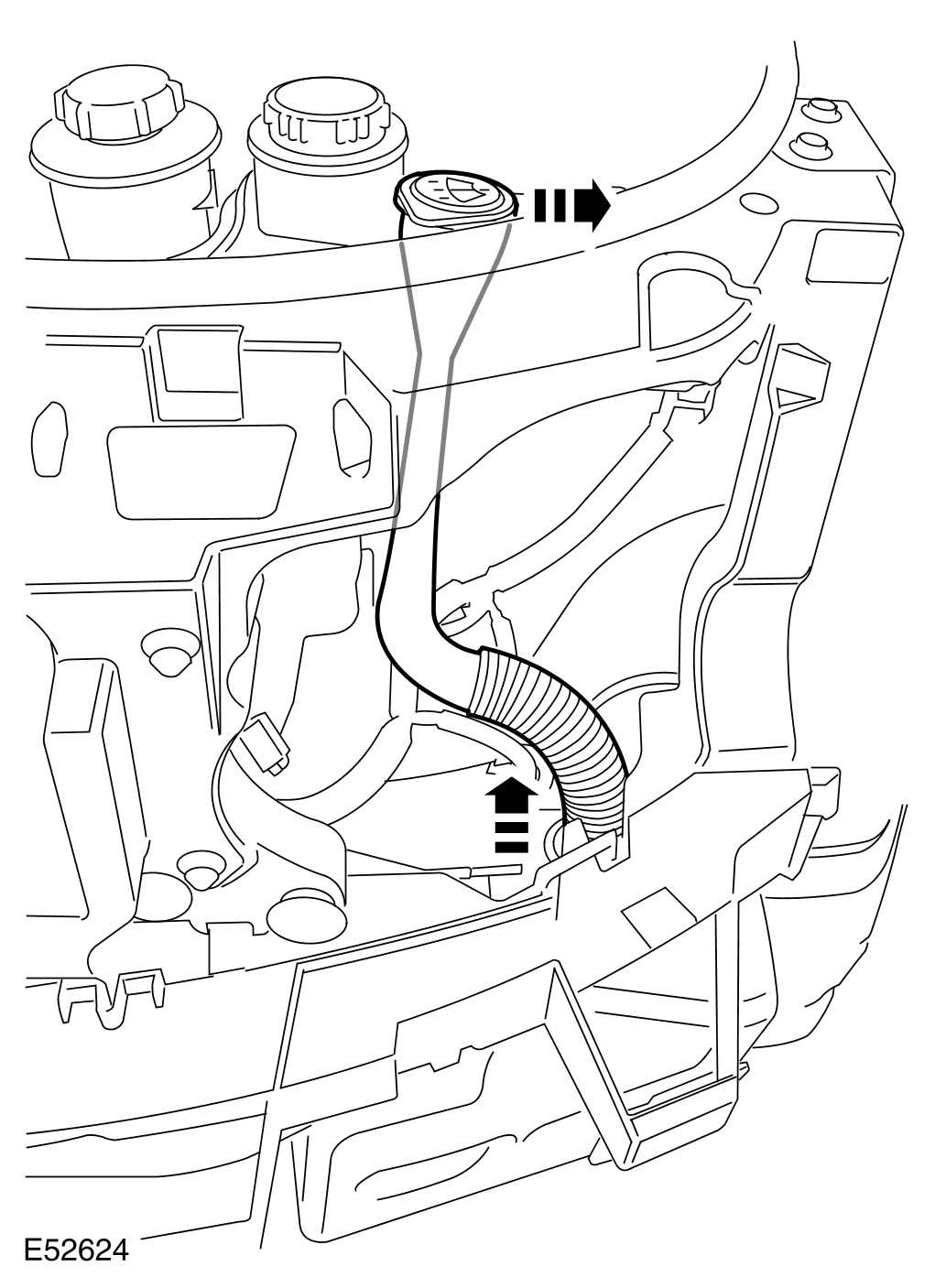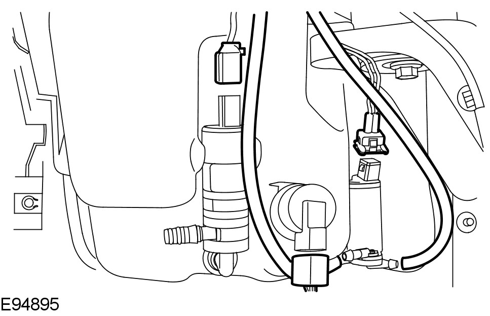 - Release the windshield washer reservoir filler neck from the coolant expansion tank.