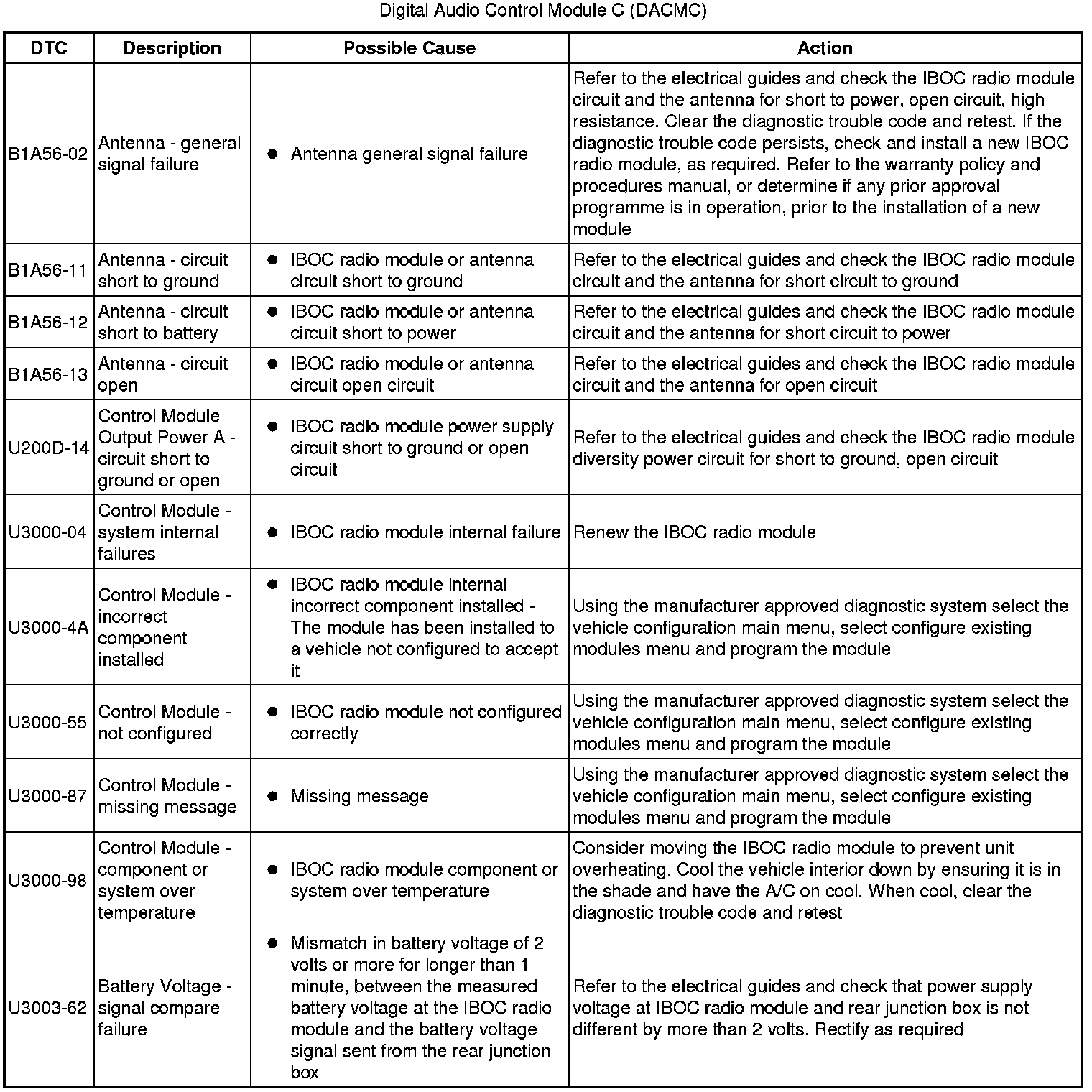 Generic scan tools may not read the codes listed, or may read only 5-digit codes. Match the 5 digits from the scan tool to the first 5 digits of the 7-digit code listed to identify the fault (the last 2 digits give extra information read by the manufacturer-approved diagnostic system).