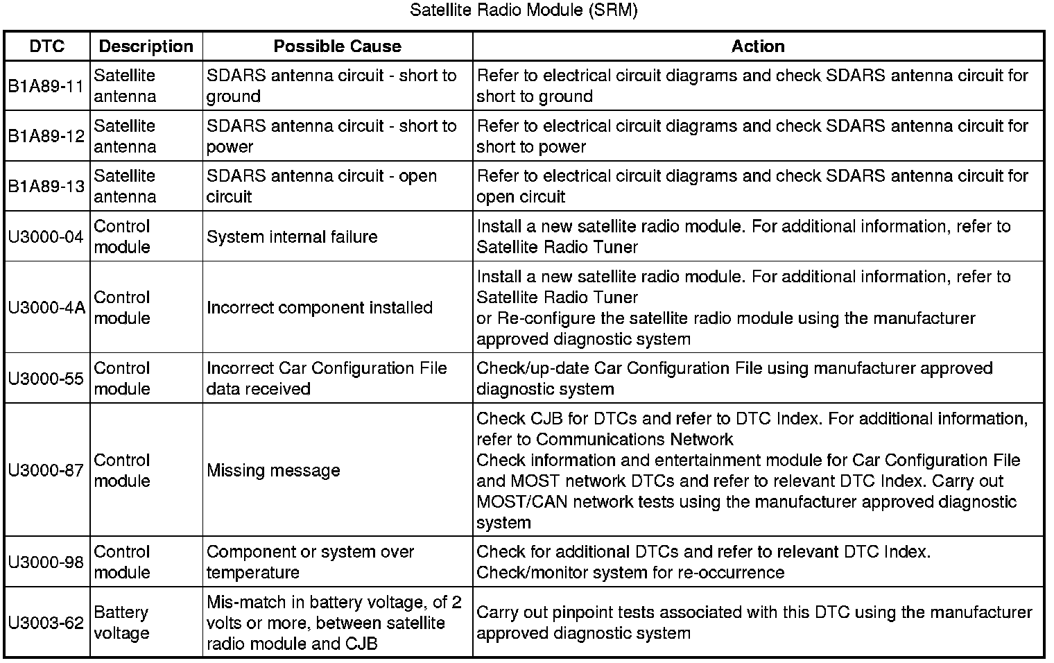 For a detailed description of the satellite radio system, refer to the relevant Description and Operation section in this product. For additional information, refer to Audio System Description and Operation