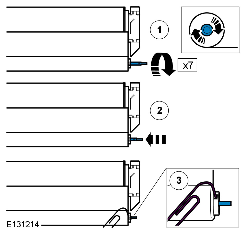 Push the roof opening panel blind in to the frame to release the left-hand spring axle.