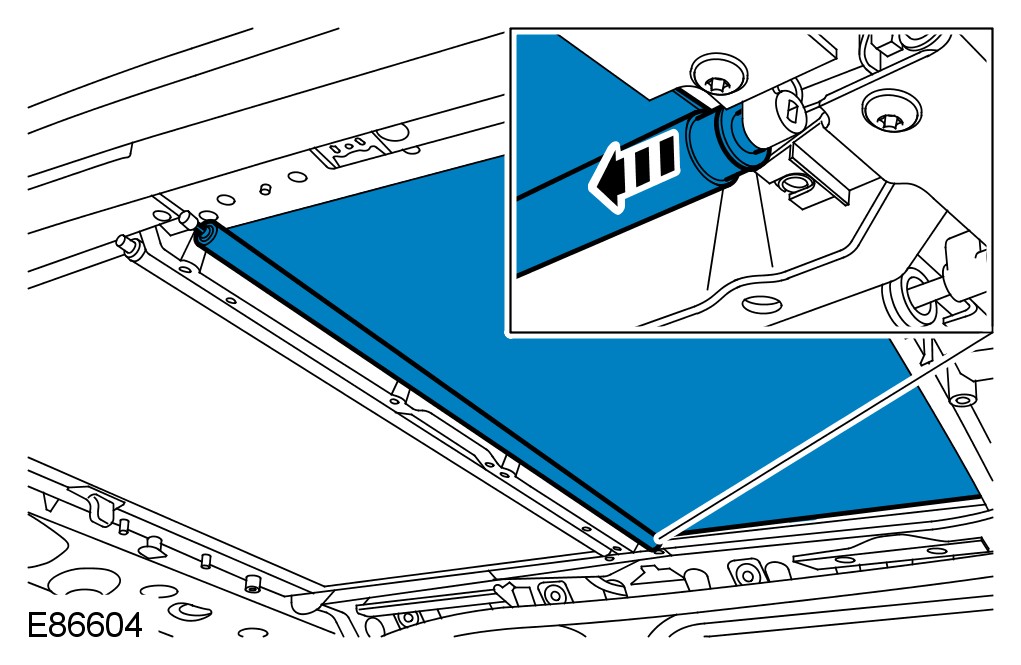 CAUTION: Do not allow the glass roof panel blind tube to rotate.