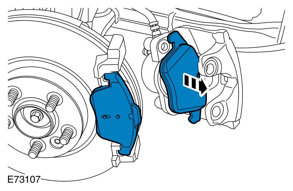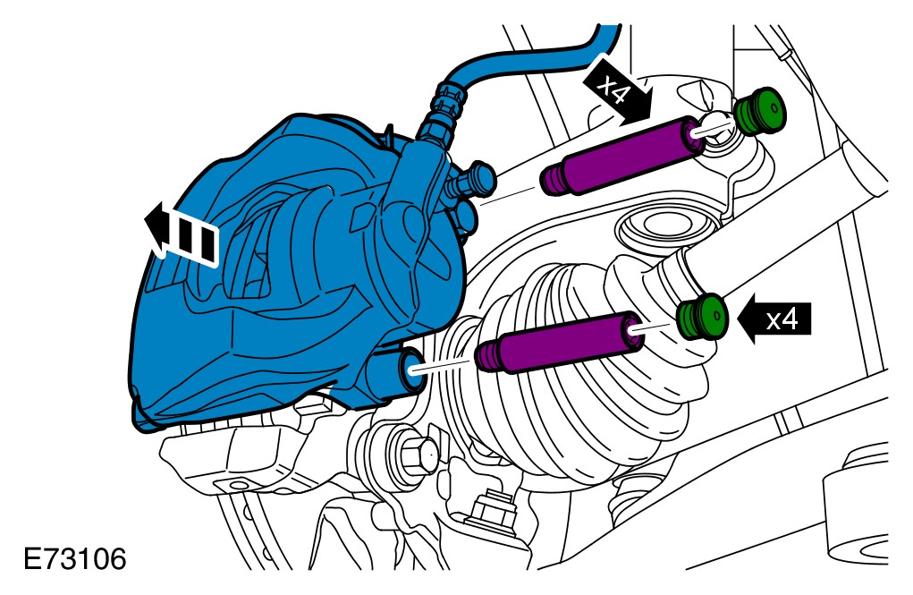 CAUTION: Make sure that the mating faces are clean and free of foreign material and that no grease is applied to the brake pad guides.