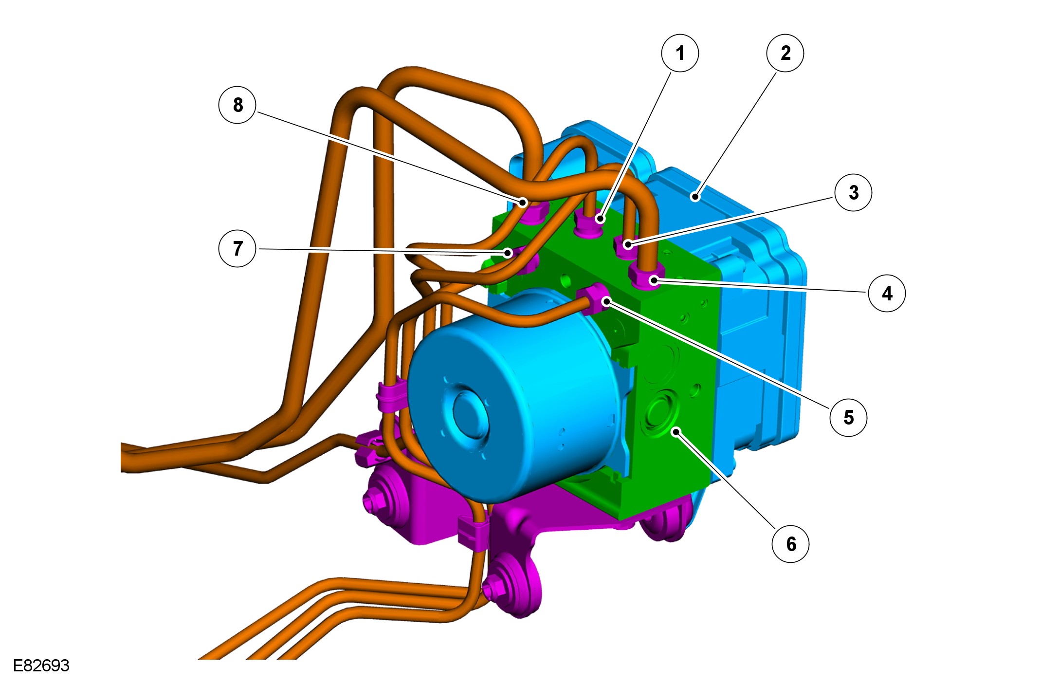 The ABS module and HCU form a single component and must not be separated. The ABS module and HCU assembly is supplied in a pre-filled state. After installation, the hydraulic brake system only requires a conventional bleed of the system; there is no requirement to pressure bleed the system.