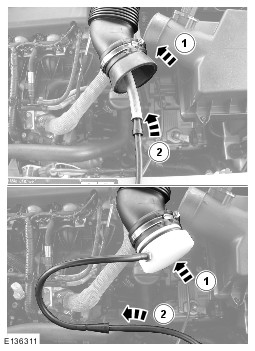 On vehicles with 3.0L TDV6, it will be necessary to insert smoke at both air cleaner outlet pipes independently if the right hand turbocharger and associated hoses are to be tested.