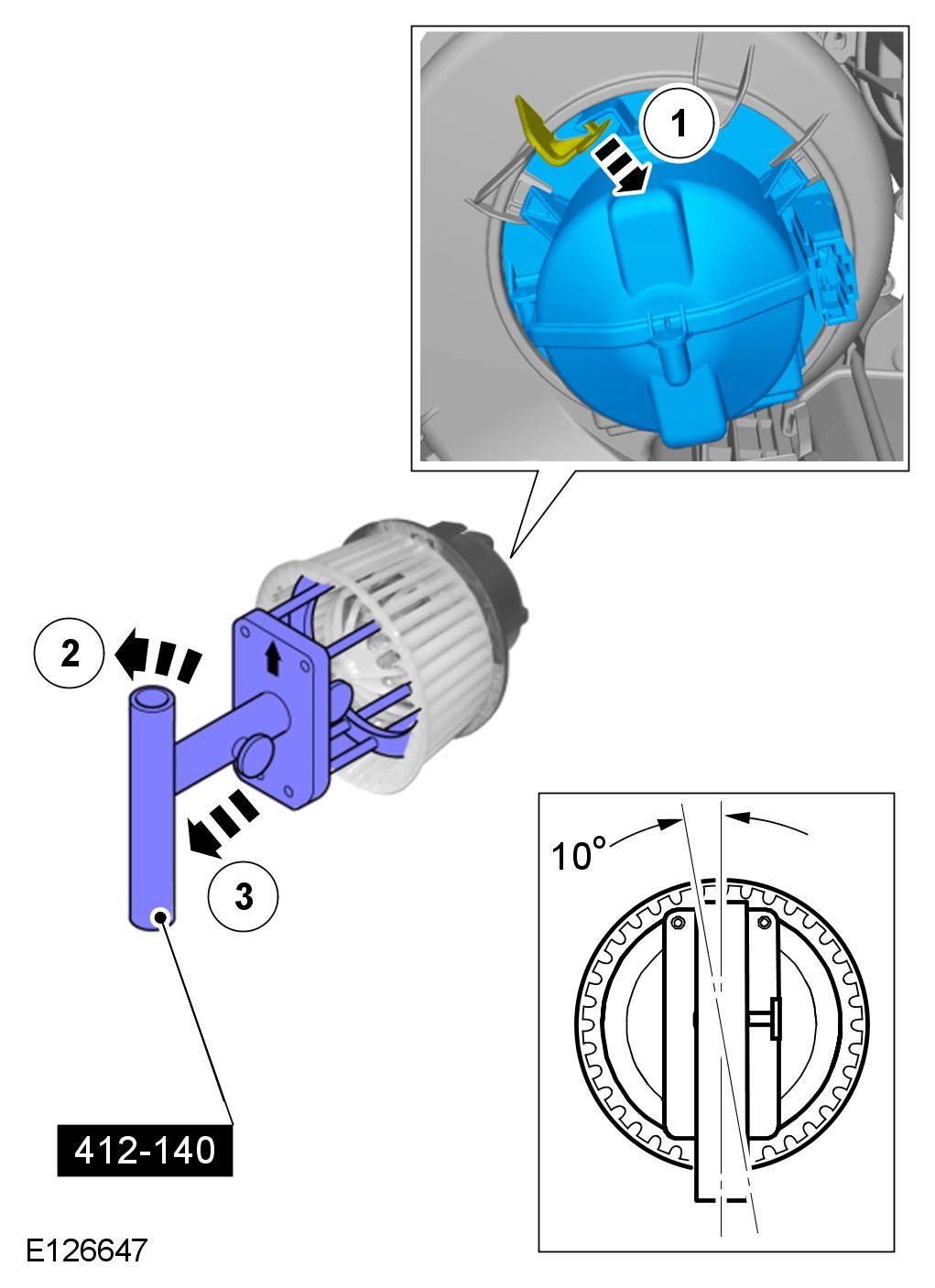 Rotate the special tool counter-clockwise to release the blower motor assembly.